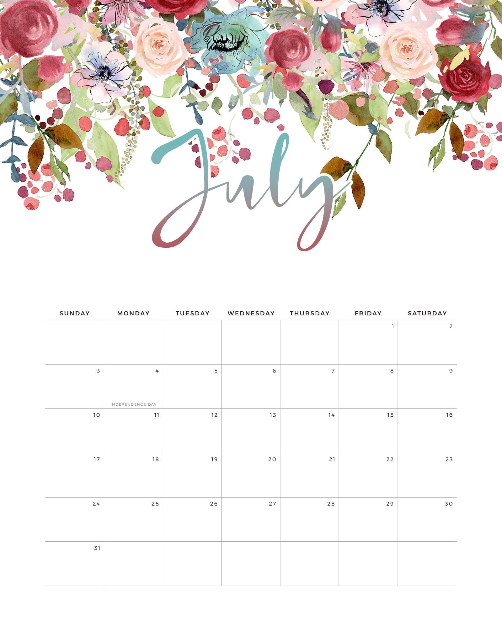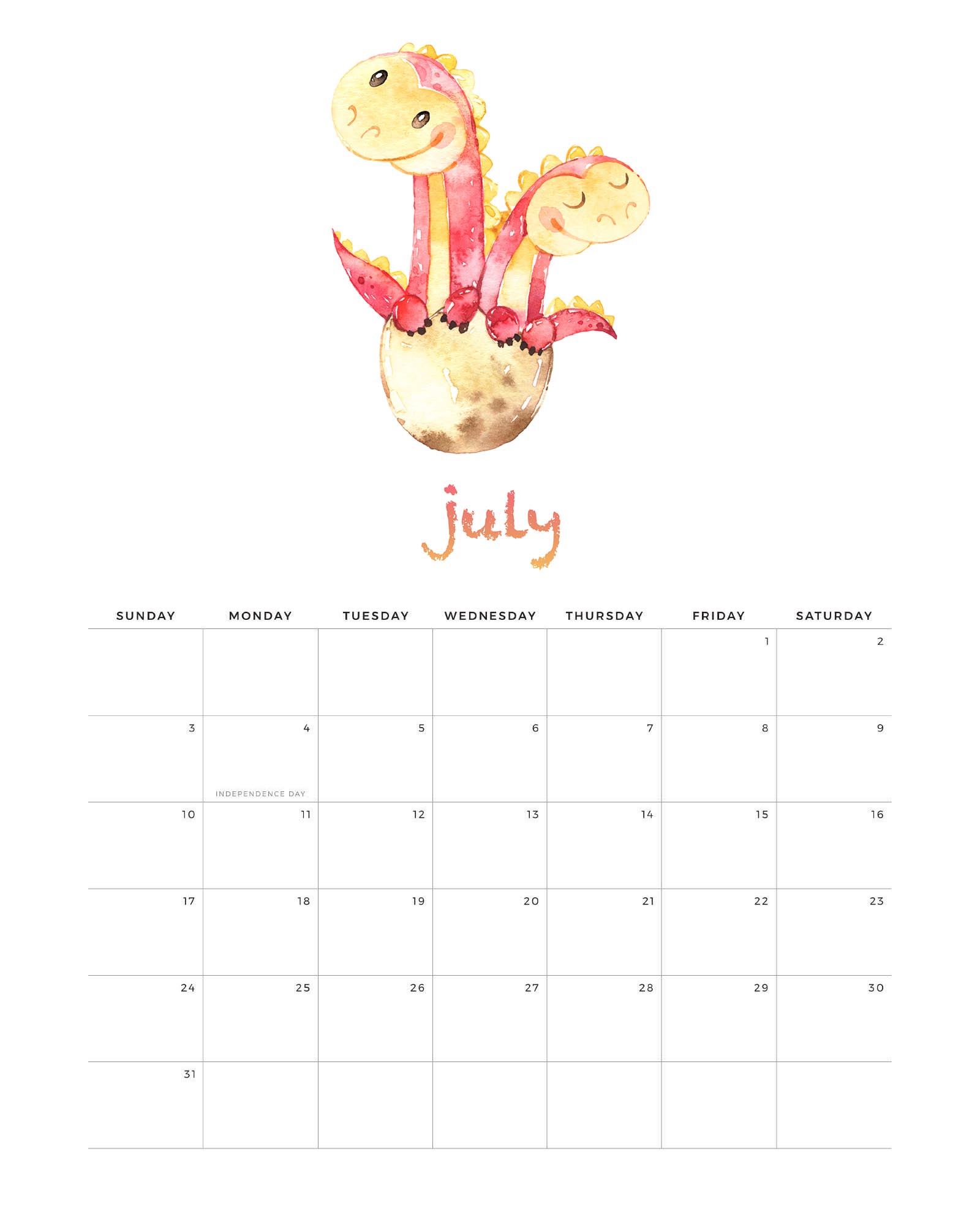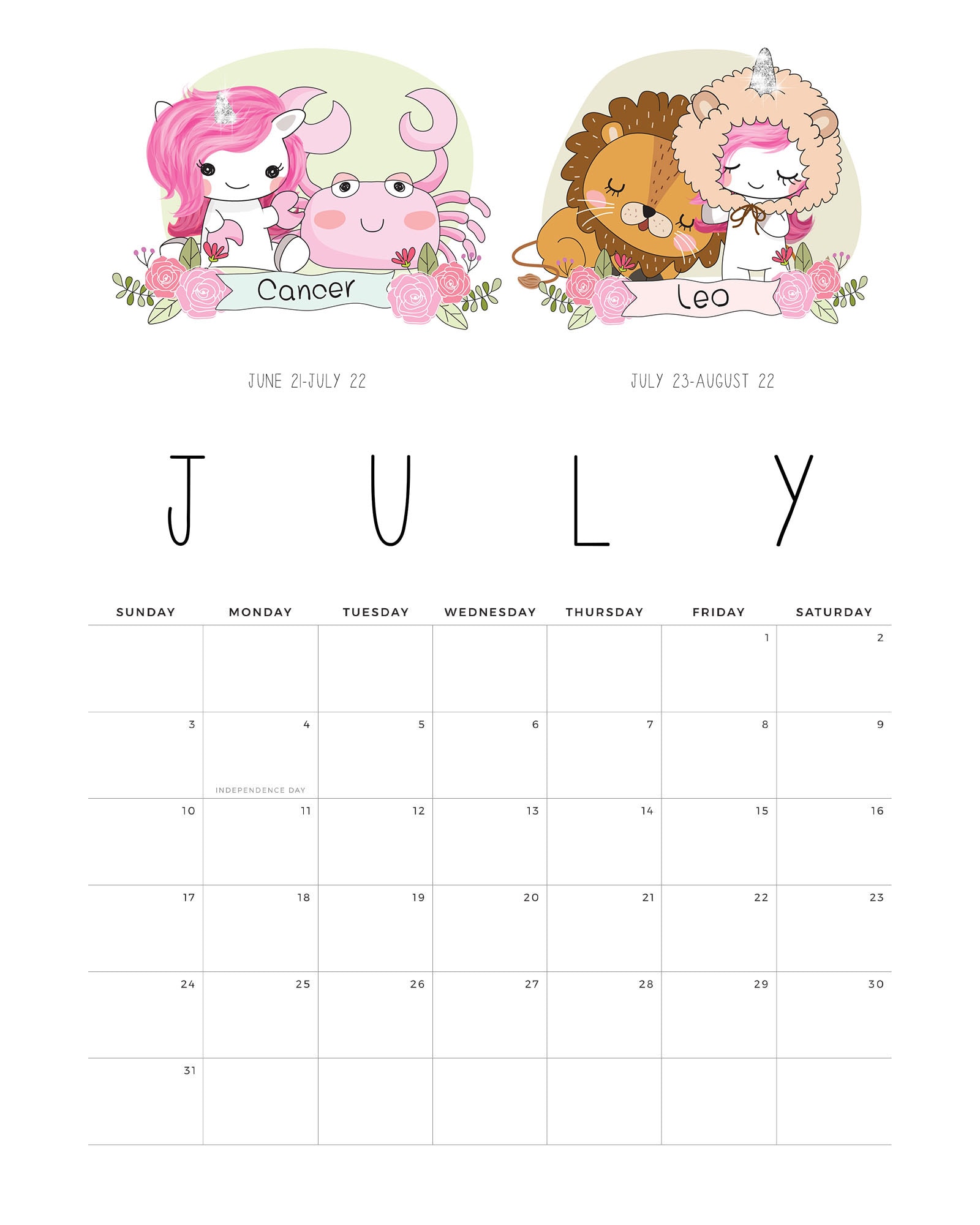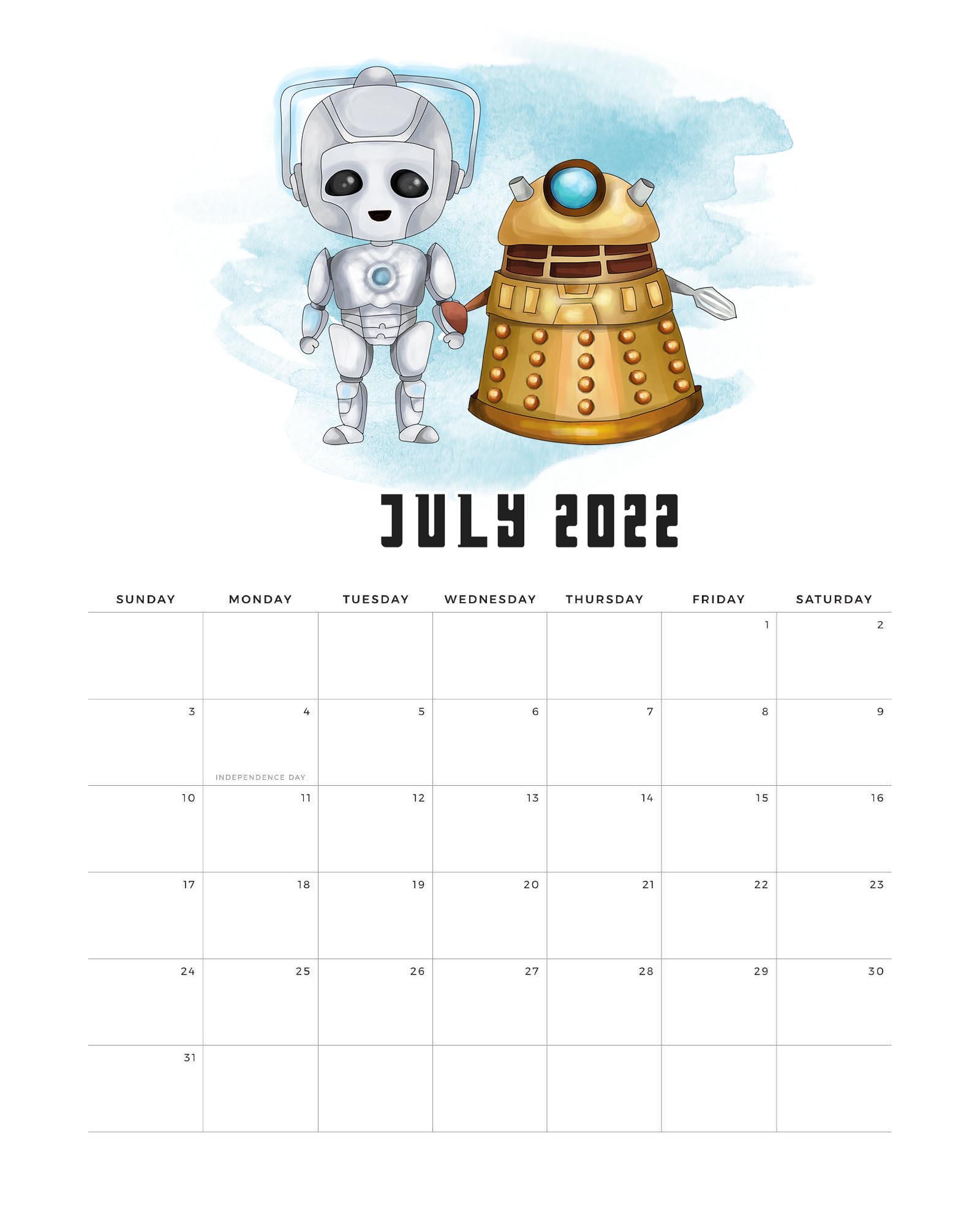 Darmowe kalendarze / planery na lipiec 2022 - do wydrukowania.