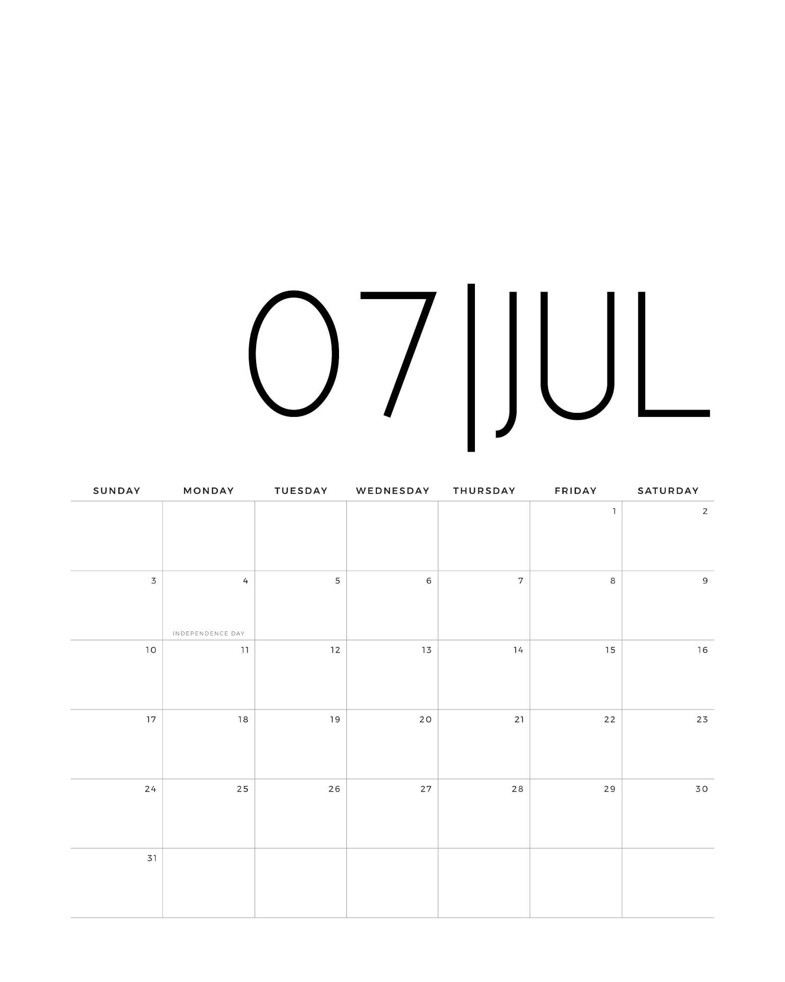 Kalendarz - planer lipiec 2022 do wydrukowania - darmowe